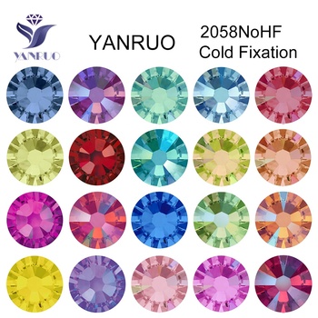 YANRUO สว่านคริสตัล AB ชุบเงา,พลอยเทียมทรงกลมแบบไม่ร้อนด้านหลังเรียบสำหรับตกแต่งเสื้อผ้า